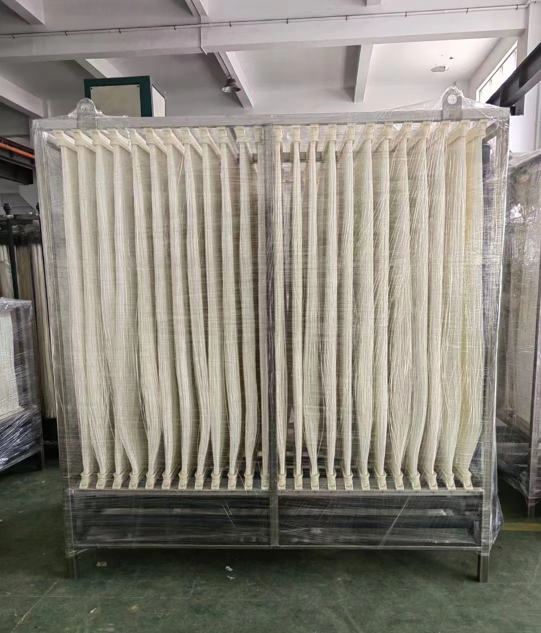 帘式膜片:多束膜丝封装在上下集水板之间,形成帘式结构,膜片宽度通常0.4-1.0m,长度1.0-2.5m,便于模块化安装。