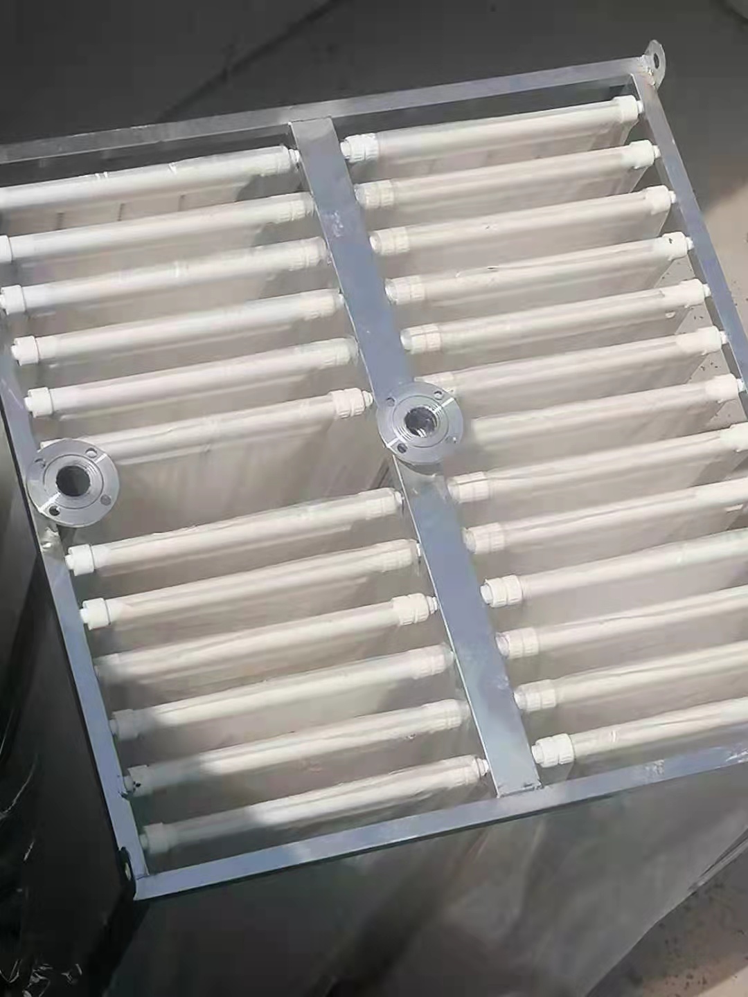 集水与支撑结构:含集水管、膜架,膜架材质可选304/316L不锈钢或碳钢防腐,确保组件在曝气、抽吸工况下稳定运行。